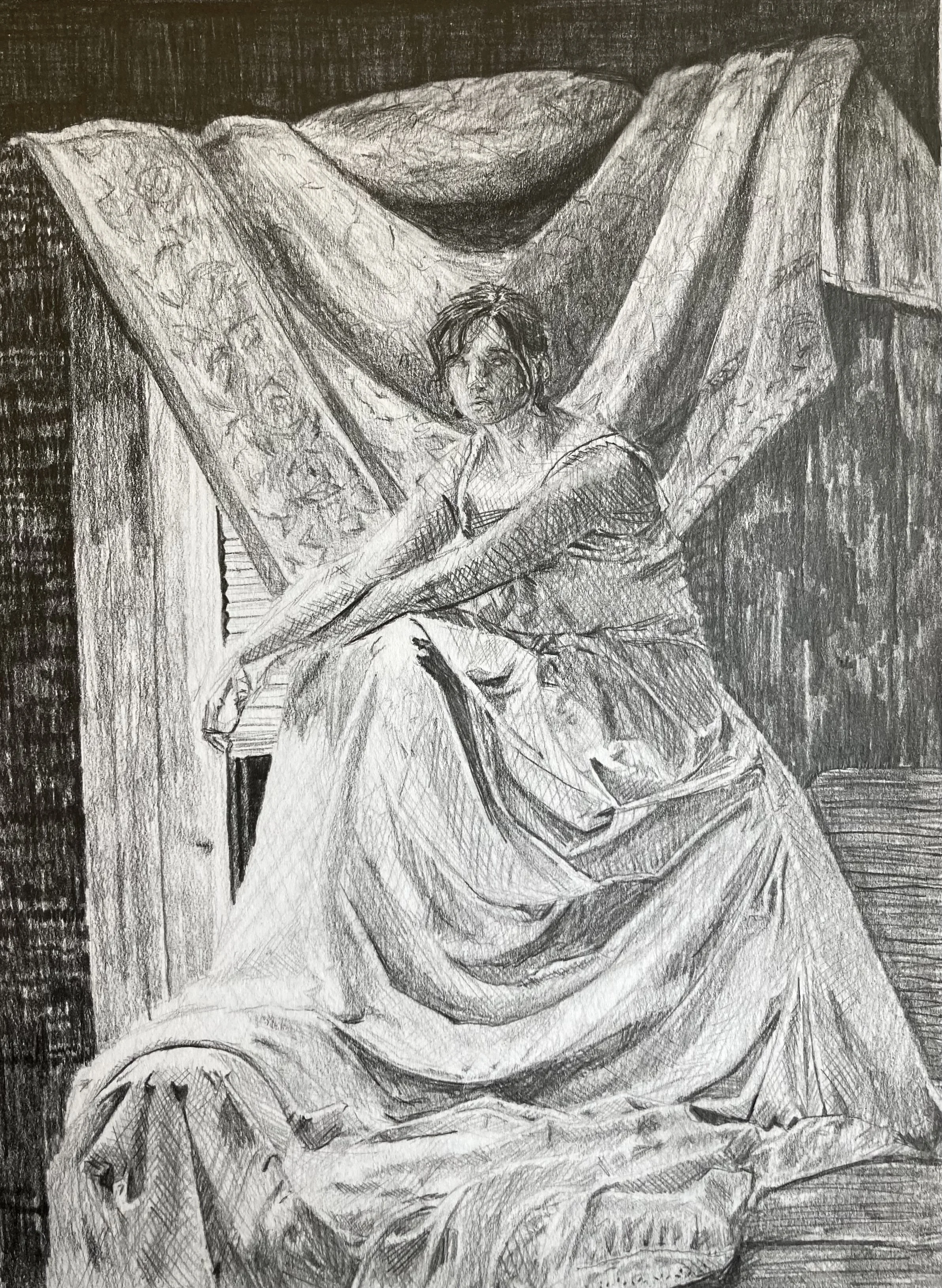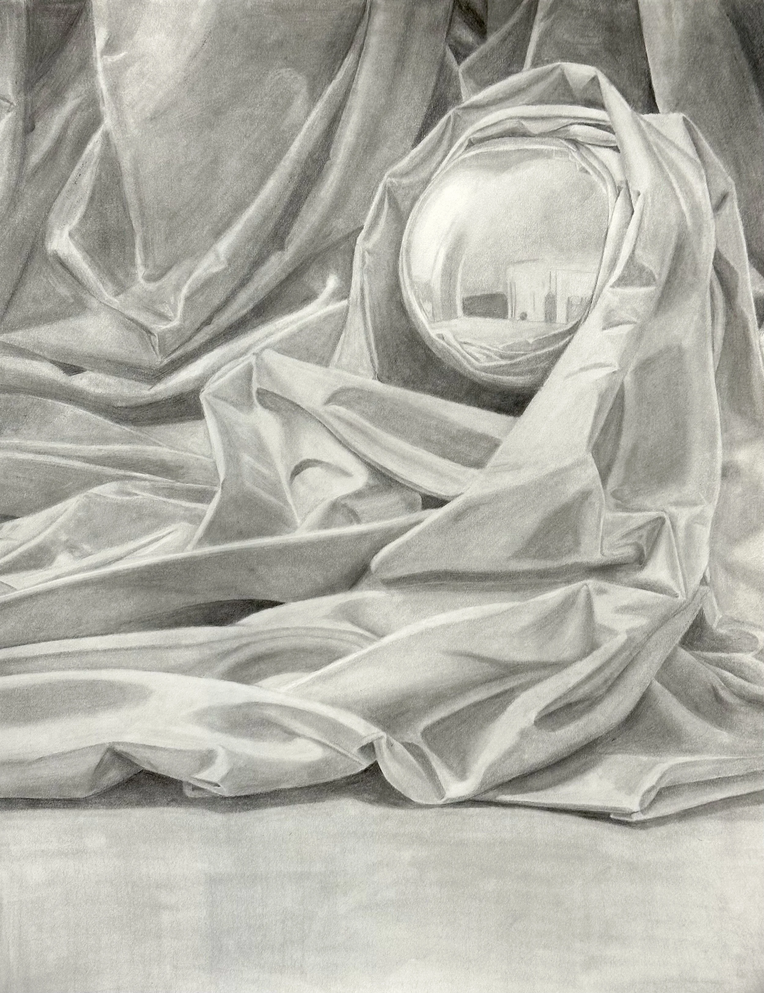 Reflection and Fabric Study - 2023, 18x24 inches, graphite