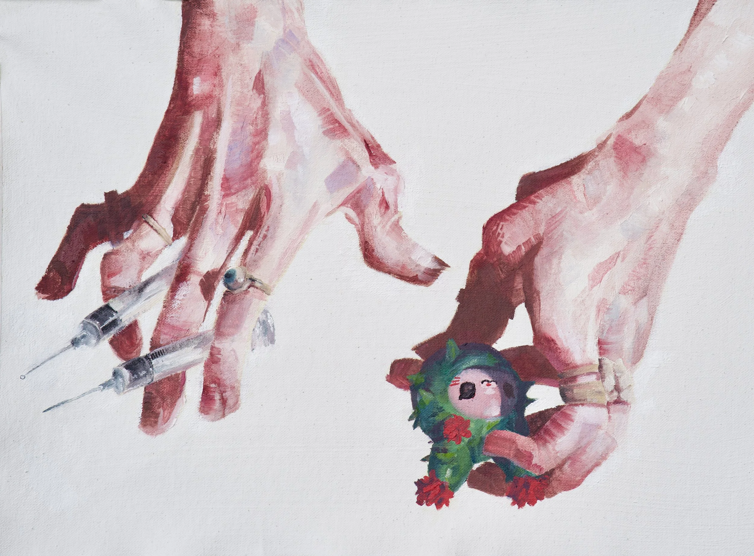 Hands Self Portrait - 2021, 12x16 inches, oil on paper